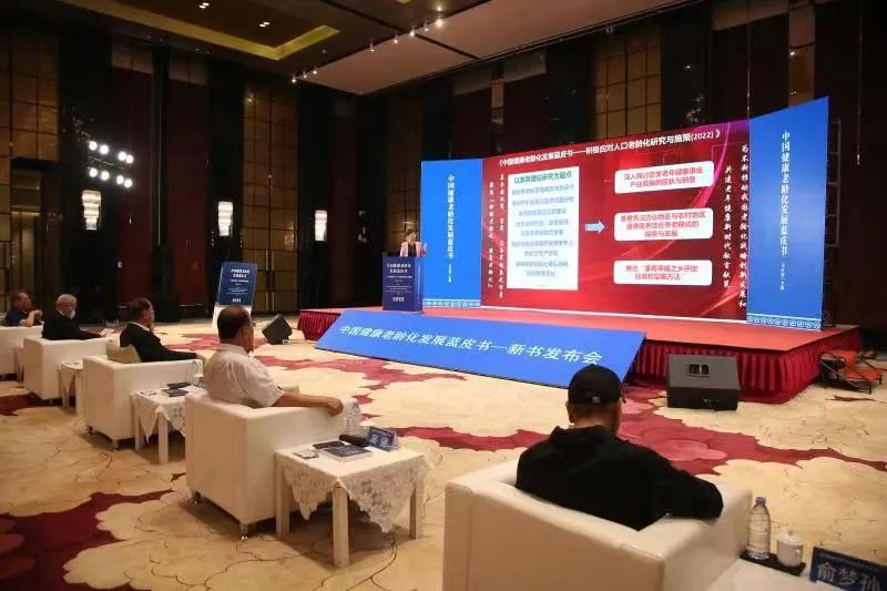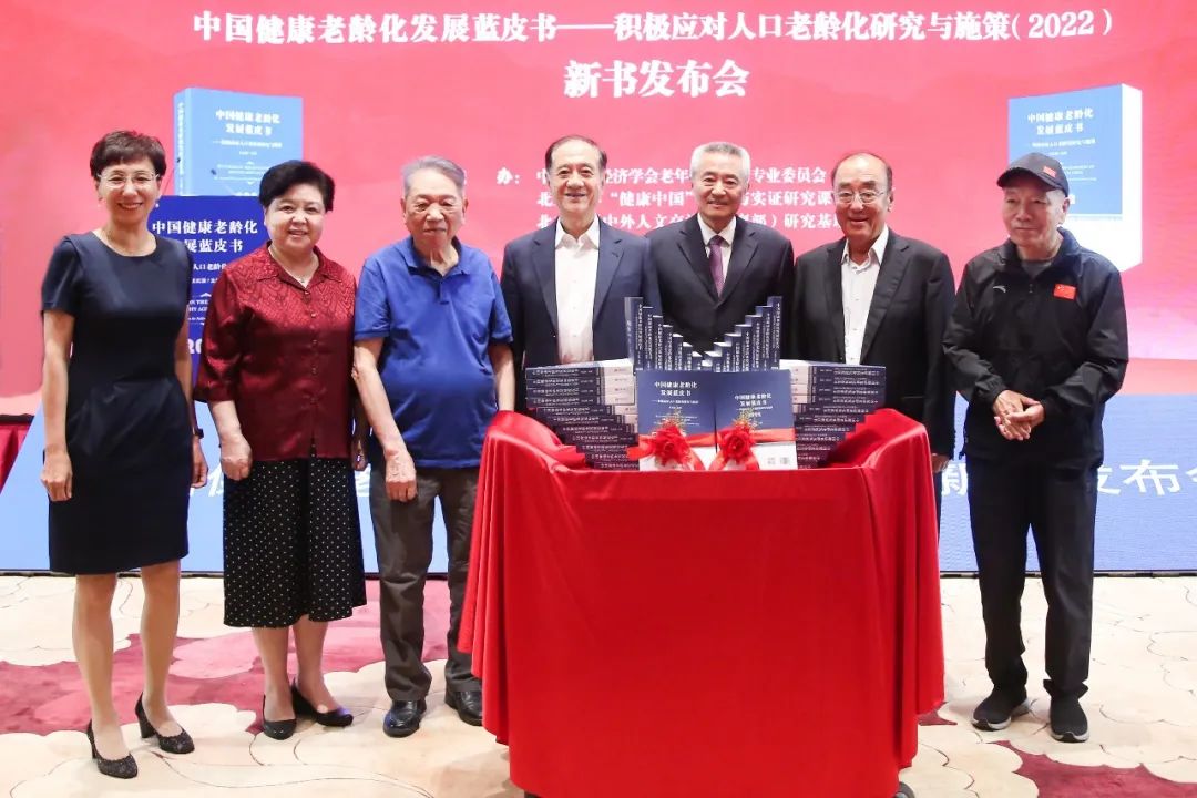 现场会议嘉宾为《中国健康老龄化发展蓝皮书——积极应对人口老龄化研究与施策(2022)》发布揭幕。