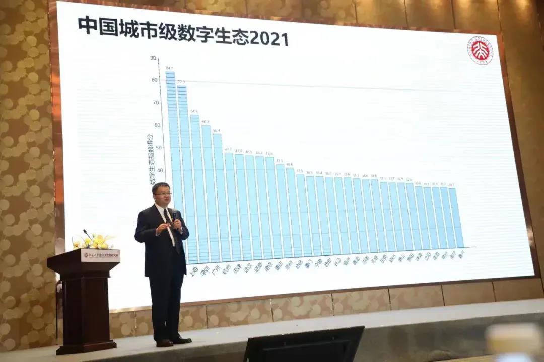 北京大学党委常委、副校长张平文院士介绍《数字生态指数2021》研究结果