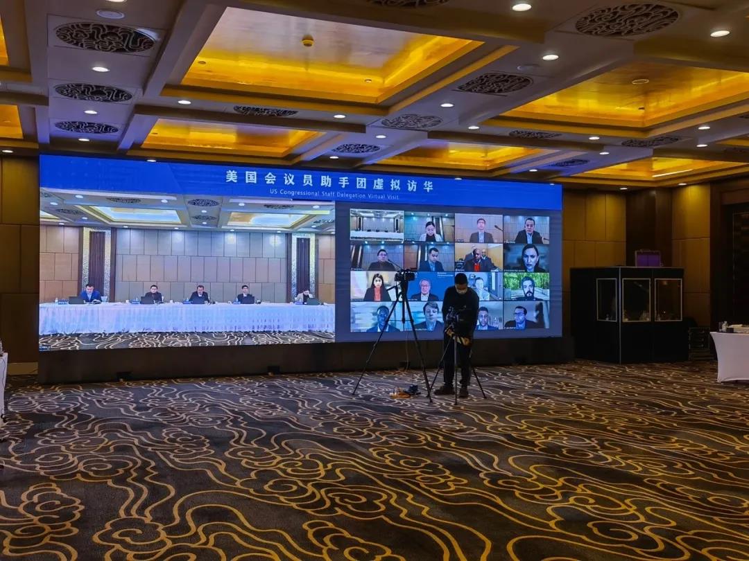 2021年12月14日,由中国人民外交学会与美国美亚学会共同举办的“美国会议员助手团虚拟访华”活动在线上举行。北京大学国际关系学院教授、中外人文交流研究基地执行主任王栋,外交学会理事、商务部国际贸易经济合作研究院美大所副所长周密,清华大学能源环境经济研究所副教授张达,中国国际问题研究院美国所副研究员龚婷四位专家学者受邀参会,与美方代表团团长达雷尔·多斯 (Darrell Doss)率领的近20位美国会议员高级助手围绕“中美经贸合作”、“气候变化”和“疫情防控”等问题进行深入交流。外交学会副会长赵卫平主持会议。