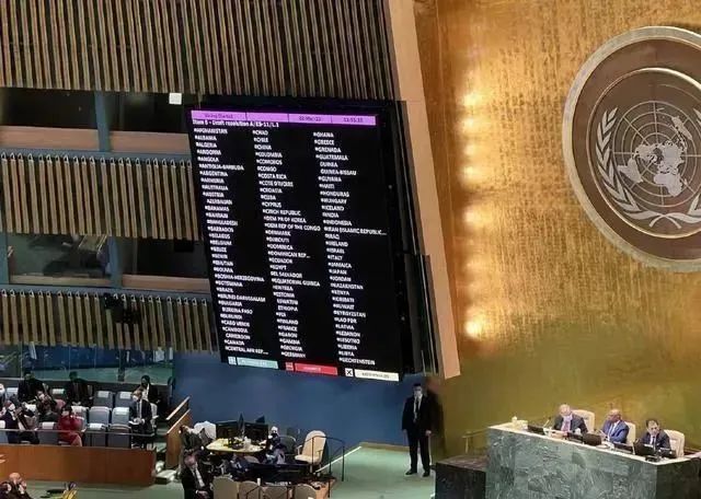 联大紧急特别会议上,各国就乌克兰局势决议草案进行投票表决。(图源:央视新闻)