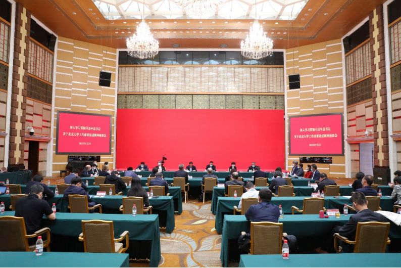 2022年5月2日上午,在习近平总书记2018年考察北京大学4周年之际,在五四青年节和北大建校124周年校庆日前夕,“深入学习贯彻习近平总书记关于北京大学工作重要论述精神座谈会”在英杰交流中心阳光厅举行。校党委书记邱水平,校长郝平,校党委常委、常务副校长龚旗煌、乔杰,校党委常务副书记、副校长、医学部党委书记陈宝剑,校党委副书记安钰峰,校党委副书记、纪委书记叶静漪,校党委常委、副校长王博、张平文、孙庆伟,校长助理董志勇,以及校务委员会副主任,各学部主任,医学部领导班子成员,各有关职能部门的负责同志,院系和附属医院的师生代表等参加会议。会议由郝平主持。