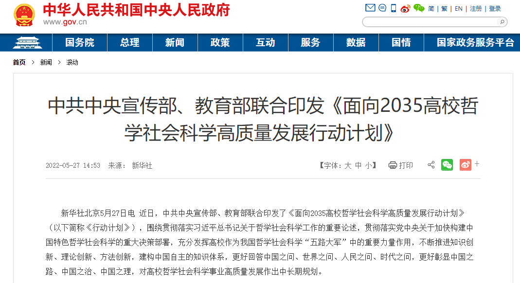 六、中共中央宣传部、教育部联合印发《面向2035高校哲学社会科学高质量发展行动计划》