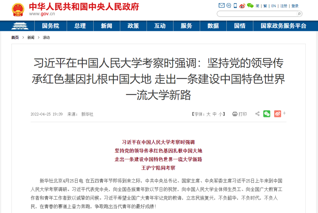二、习近平总书记到中国人民大学考察调研并发表重要讲话