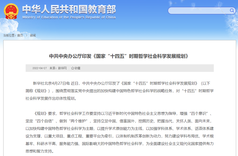 四、中共中央办公厅印发《国家“十四五”时期哲学社会科学发展规划》