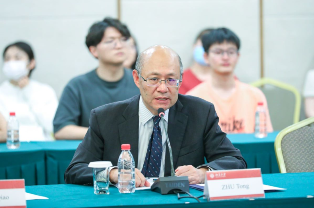 在师生发言环节,北京大学博雅特聘教授、燕京学堂院长、法兰西道德与政治科学院外籍终身通讯院士、北京大学中外人文交流研究基地学术委员董强介绍了学堂及学生在生物多样性保护和可持续发展等全球问题方面所做的努力。