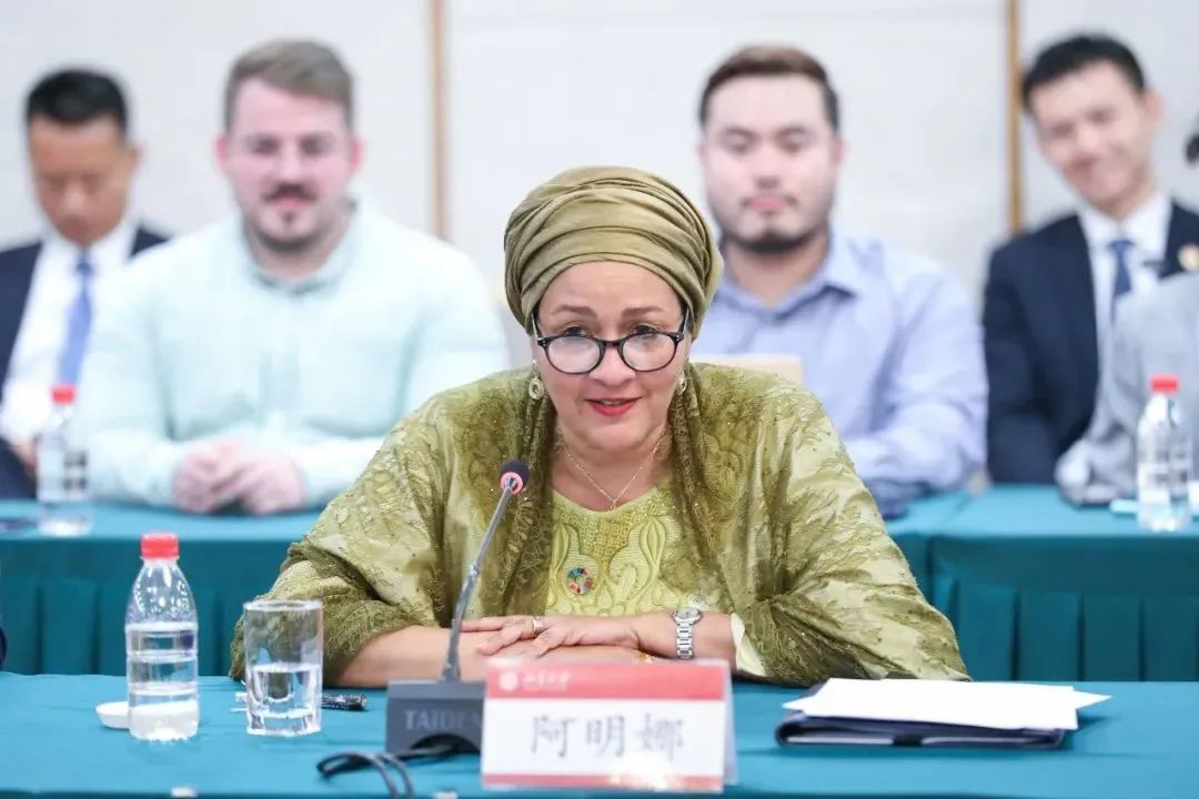 围绕气候、环境、可持续发展,阿明娜与北大师生进行深入交流。她在座谈会上提出,希望年轻人可以运用想象力和奉献精神,创造一个更加清洁、安全、公平的世界。