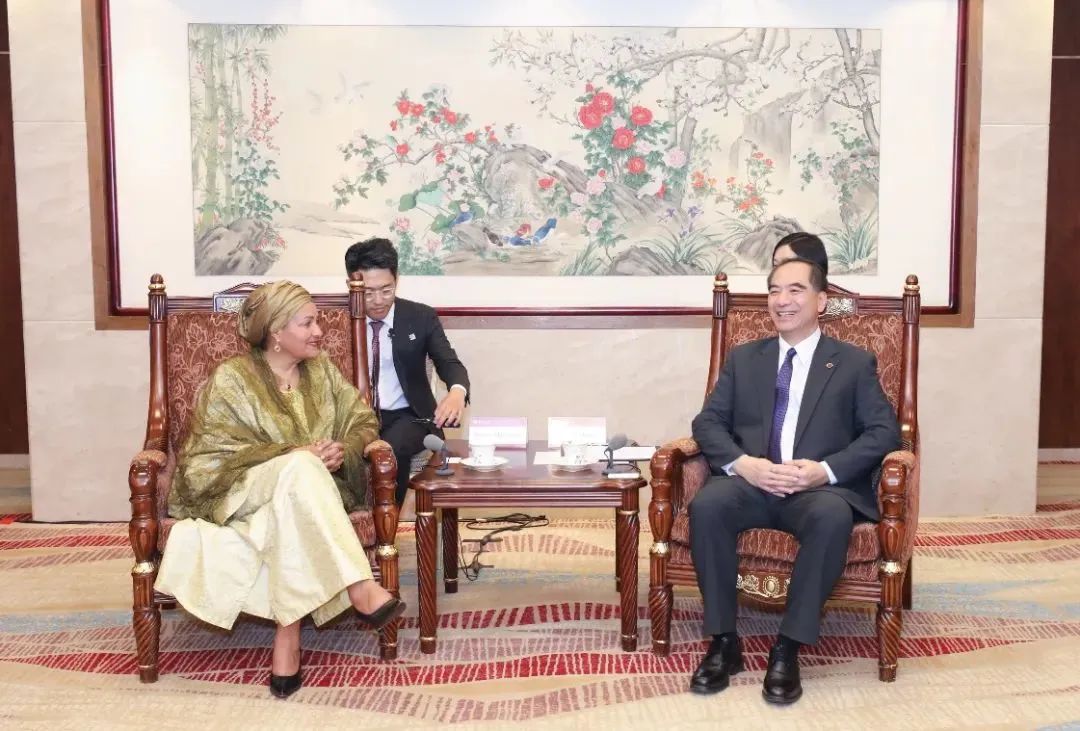 6月30日,联合国常务副秘书长、联合国可持续发展集团主席阿明娜·穆罕默德(Amina J. Mohammed)访问北京大学,联合国副秘书长李军华,联合国驻华协调员常启德陪同来访。北京大学校长龚旗煌院士,副校长、教务长王博在英杰交流中心会见阿明娜一行。