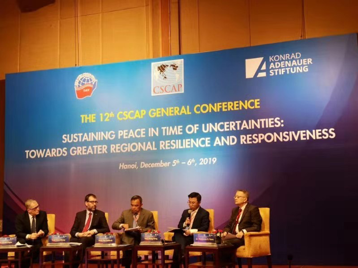 2019年12月5-6日,亚太安全合作理事会(CSCAP)第12届国际研讨会在越南河内举行。大会以“在动荡时期中维持和平:面向更具适应性和韧性的地区”为主题。越南外交部副部长阮国勇(Nguyen Quoc Dung)做主旨发言,200余位来自亚太地区的高级官员、使节、学者和智库专家出席会议。北京大学国际关系学院教授、中美人文交流研究基地执行副主任王栋受邀参会并就多边机制角色与全球治理改革发言。