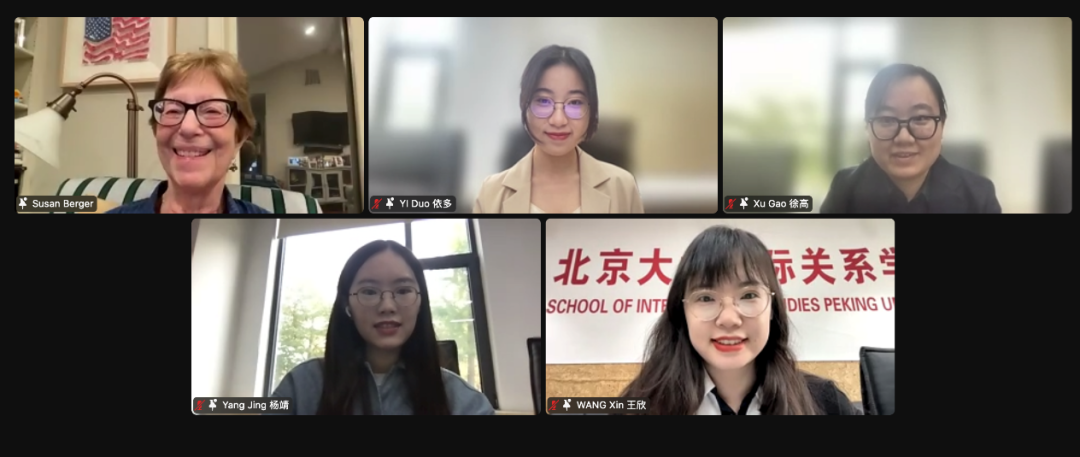 2022年10月12日,2021-2022年北京大学国际关系学院伯杰纪念奖学金(USCET's Samuel "Sandy" R. Berger Memorial Fellowship)颁奖仪式成功举行。中美多位重要嘉宾出席线上会议,与获得2021、2022年伯杰纪念奖学金的四位学子亲切交流,对学生们的研究进行评论和建议,并就中美关系的未来发展进行展望。