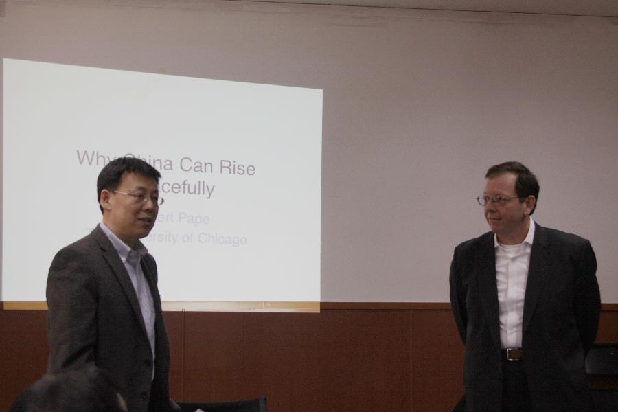 受中外人文交流基地(原中美人文交流研究基地)和北大美国研究中心中心邀请,美国芝加哥大学政治学系教授罗伯特·佩普(Robert Pape)于2014年3月12日访问我院,并在国关B117教室给学院师生带来一场精彩讲座。佩普教授是美国著名国际安全和战略研究学者,在强制外交、经济制裁、软制衡和恐怖主义等问题上都做出了具有开创性的理论研究,在国际学界具有广泛的影响。2008年美国总统大选期间,佩普曾担任奥巴马的顾问。曾先后在美国空军大学及达特茅斯学院任教,现为芝加哥大学政治学系终身教授。