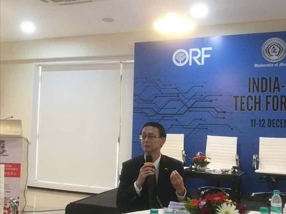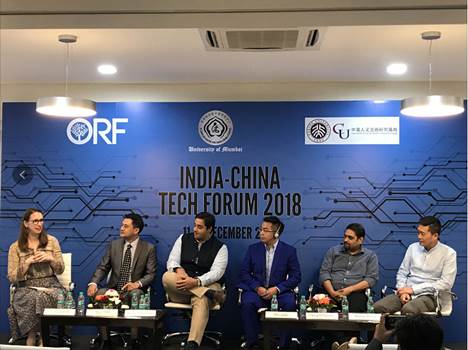 在此背景下,12月11至12日,由北京大学中外人文交流研究基地(原北京大学中美人文交流研究基地)、盘古智库、印度著名智库观察家研究基金会(Observer Research Foundation)与孟买大学季羡林印度中国研究中心(Ji Xianlin Center for India-China Studies, University of Mumbai)联合举办的首届“中印高科技论坛”在印度孟买顺利举行。中国驻孟买总领事唐国才莅临与会,此外,北京大学中美人文交流研究基地执行副主任王栋、盘古智库学术委员会副主任委员、澳大利亚国家工程院院士刘科,华为印度分公司首席执行官陈明杰,中国工商银行印度分行行长郑斌,信中利美国创投公司创始管理合伙人王维嘉,沐盟集团董事长吴家富,深圳企业家创新协会高级顾问任韧,阿里巴巴研究院高级顾问盛振中等中方嘉宾,及印度观察家研究基金会副主席Dhaval Desai,Investopad合伙人Rohan Malhotra、班加罗尔网络和政策中心高级政策研究员Arindrajit Bas等来自印度财政部、企业界、投资界与智库界的印方嘉宾出席了论坛。此次活动受到中印各界广泛关注,两国科技界、企业界、政策界等共100多名人士出席了活动。