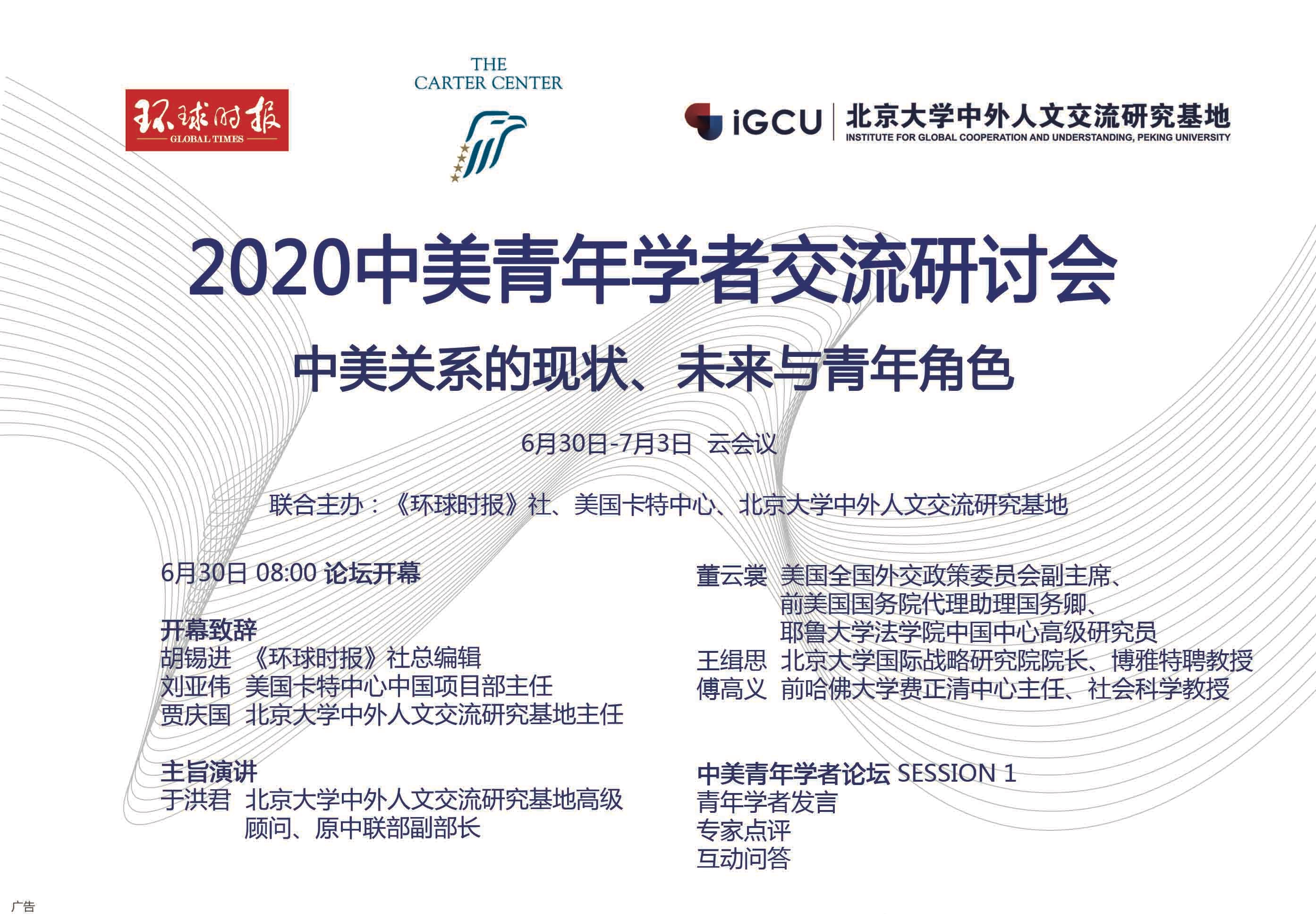 2020年6月30日至7月3日,由《环球时报》社、美国卡特中心、北京大学中外人文交流研究基地共同主办的“第五届中美青年学者论坛”举办,数十位两国青年学者、专家齐聚云端,围绕“中美关系的现状、未来与青年角色”这一主题各抒己见,为中美双边关系的发展建言献策。