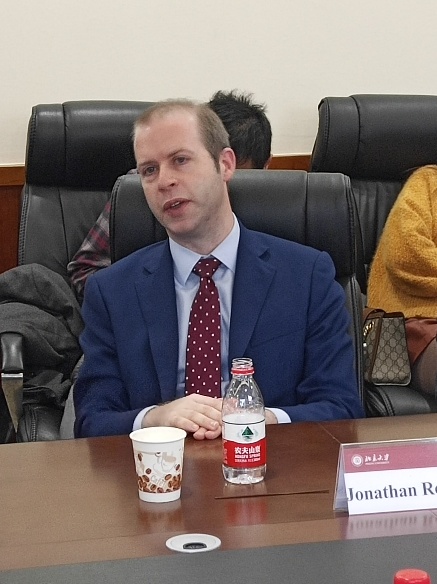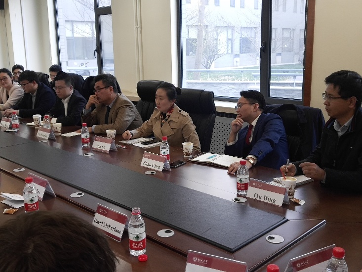 座谈会后半程,Richard Graham议员对中国全球影响力的上升与中美关系近期的波动表示关切,对此王栋副教授在回应中强调,对于中美战略竞争与近期的摩擦,国际社会不应只听美国的一面之词,也应了解中国的声音,中国正在努力适应和学习成为真正的有影响力的全球性大国,这个过程不是一蹴而就的。在提问环节,梁亚滨副教授和熊洁助理研究员与英方议员就WTO改革与全球自由贸易机制面临的挑战进行了讨论,曲兵副研究员表达了对英国政策制定者对中国的了解程度的关切,孙璐博士后则关注议会两党对于一带一路的态度,英方议员对此一一做了坦率细致的回复。最后,王栋副教授邀请崔洪建研究员对会议进行了简要总结,并欢迎英国议员再次来访北京大学国际关系学院,会议在友好热烈的气氛中结束。
