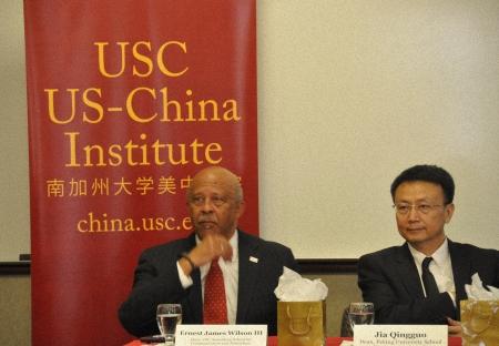 21日下午,发布活动在洛杉矶南加州大学举行,贾庆国院长和南加州大学安娜伯格传媒与新闻学院院长威尔逊向与会者介绍了双边委员会成立的初衷,共同撰写报告的目的,以及对加强中美两国互信的设想和期待,会上还邀请了双边委员会的部分成员和洛杉矶参与组织中美民间交流的代表人士发言,来自洛杉矶地区各界人士大约有100余人参加了该活动。活动前后,两位院长还分别接受了美国记者的采访。