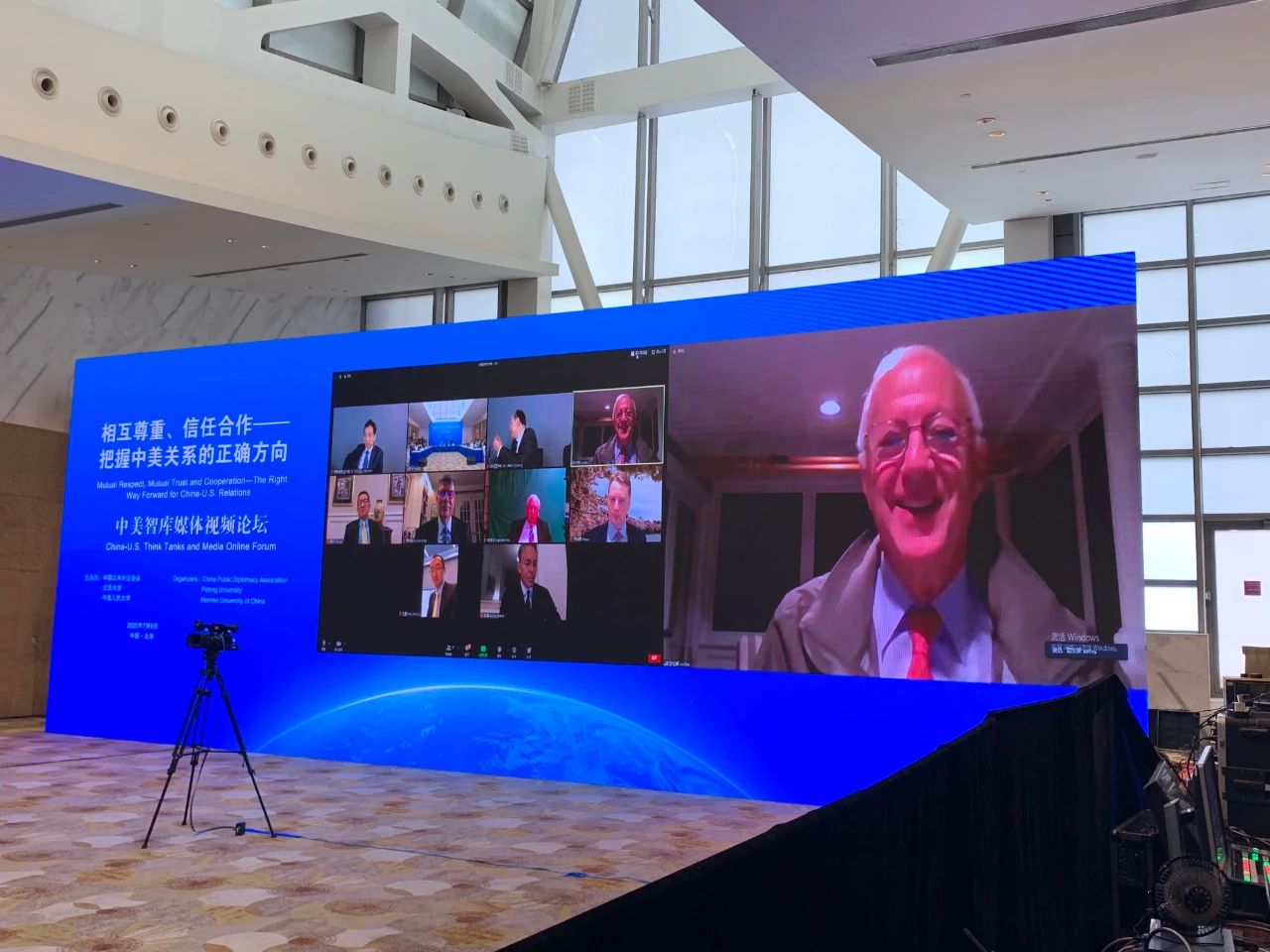 导言:在中美关系和全球治理面临挑战的关键时期,为增进中美两国的相互理解和信任,发挥公共外交、民间外交和智库外交对于两国关系的重要意义,2020年7月9日,由中国公共外交协会、北京大学和中国人民大学共同主办的“中美智库媒体视频论坛”成功举行。北京大学中外人文交流研究基地作为主要协办方之一参与组织此次论坛。论坛以“相互尊重、信任合作——把握中美关系的正确方向”为主题。三十余位中美双方政要、前政要、知名智库专家学者、资深中外媒体负责人围绕“当前中美关系的问题与挑战”和“未来中美合作的展望与建议”展开对话。本次论坛也旨在通过沟通与学术交流,夯实中美友好互信的人文与社会基础,增信释疑,合作向前。