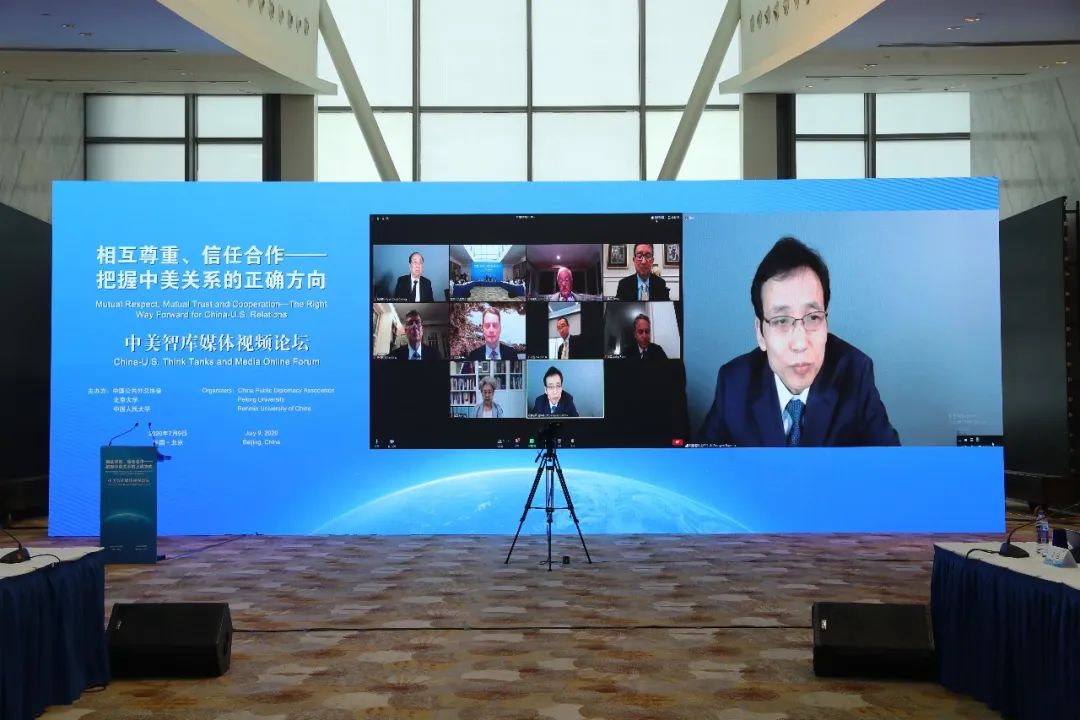 导言:在中美关系和全球治理面临挑战的关键时期,为增进中美两国的相互理解和信任,发挥公共外交、民间外交和智库外交对于两国关系的重要意义,2020年7月9日,由中国公共外交协会、北京大学和中国人民大学共同主办的“中美智库媒体视频论坛”成功举行。北京大学中外人文交流研究基地作为主要协办方之一参与组织此次论坛。论坛以“相互尊重、信任合作——把握中美关系的正确方向”为主题。三十余位中美双方政要、前政要、知名智库专家学者、资深中外媒体负责人围绕“当前中美关系的问题与挑战”和“未来中美合作的展望与建议”展开对话。本次论坛也旨在通过沟通与学术交流,夯实中美友好互信的人文与社会基础,增信释疑,合作向前。