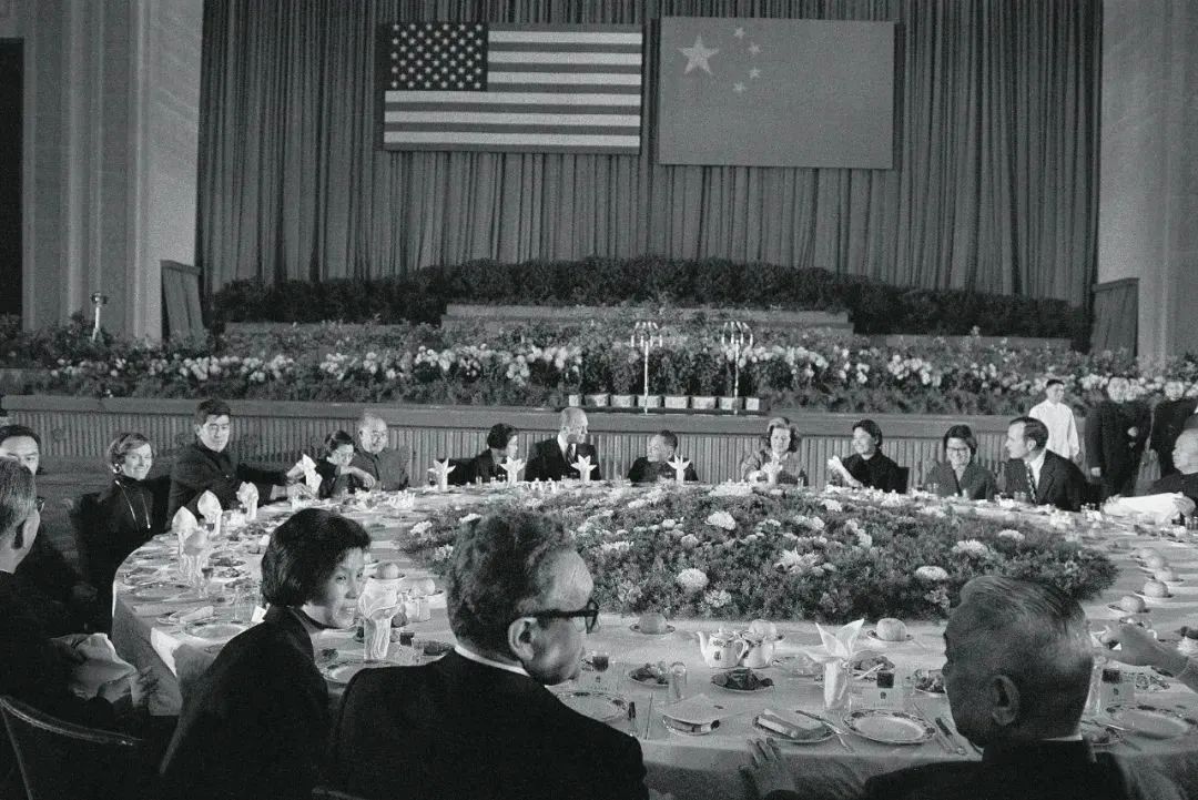 1975年,基辛格与美国总统福特出席在人民大会堂举行的宴会