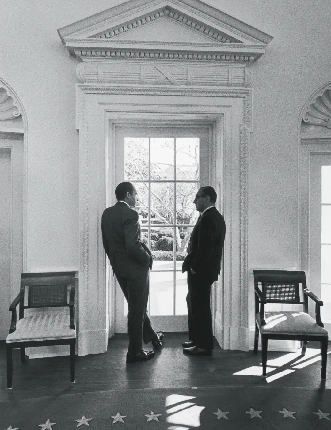1972年,美国总统尼克松(左)与国家安全事务顾问基辛格(右)在白宫交谈