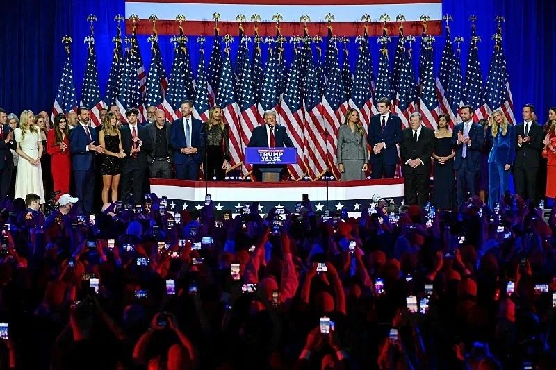 当地时间6日凌晨,美国共和党总统候选人、前总统特朗普在佛罗里达州棕榈滩会议中心发表讲话,宣布在2024年总统选举中获胜。