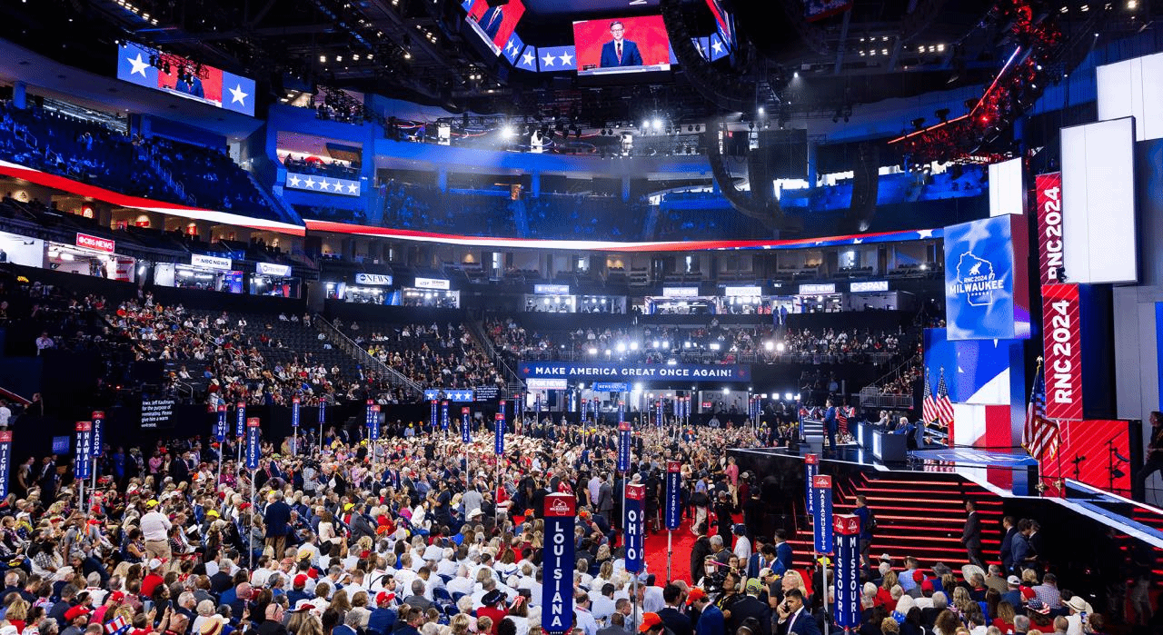 2024年7月15日至18日,美国共和党全国代表大会在威斯康星州密尔沃基市召开,图为全代会会场。