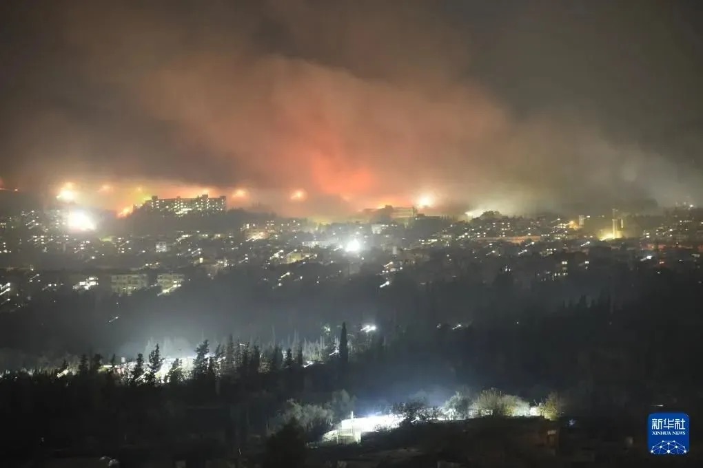 12月9日,叙利亚首都大马士革遭空袭后升起浓烟。图源/新华社(蒙塞夫·梅马里摄)