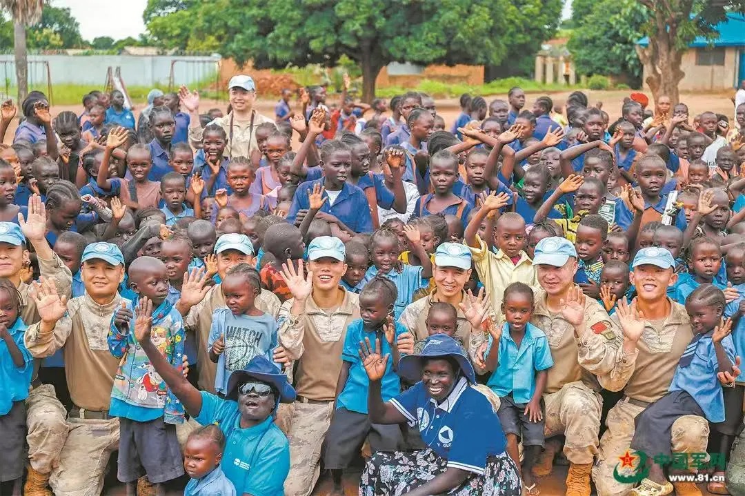 2024年10月,中国第14批赴南苏丹(瓦乌)维和工兵、医疗分队官兵来到南苏丹瓦乌市海克斯蒂学校,为师生捐赠文体用品,并表演了精彩的中国传统文化节目(图源:中国军网)