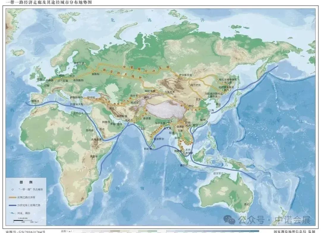 “一带一路”经济走廊及其途经城市分布地势图