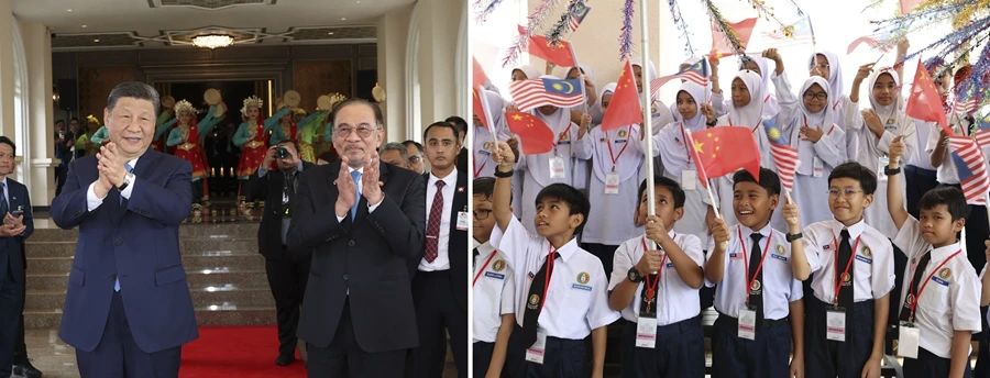 安瓦尔热烈欢迎习近平主席到访马来西亚,表示长期以来中国真诚帮助马来西亚,安危与共、患难与共,是马来西亚值得信赖的朋友。习近平主席领导中国取得伟大发展成就,带领中国人民摆脱贫困,倡导共同繁荣、文明互鉴,是当今世界的卓越领导人。马来西亚人民敬佩中国和习近平主席。习近平主席此访取得的创纪录合作成果,对马方意义重大,马方深受鼓舞。马方坚定奉行一个中国政策,不支持任何“台独”行径。马方愿同中方深化战略沟通,巩固政治互信;扩大两国贸易,欢迎中国企业赴马投资兴业,与马方发展数字经济、绿色经济、人工智能等新兴技术领域合作,助力两国实现更大发展;增进文化、教育、旅游等人文领域交流,促进人民相知相亲;开展伊斯兰文明和儒家文明对话,促进人类文明进步。面对单边主义抬头,马方愿同中方加强合作,共同应对风险挑战。东盟不会赞同任何单方面施加关税的做法,将通过合作联合自强,保持经济增长。马方高度赞赏中国在国际地区问题上发挥的积极作用。马来西亚作为东盟轮值主席国和东盟-中国关系协调国,将推动加强东盟-中国合作,促进地区和平稳定繁荣。