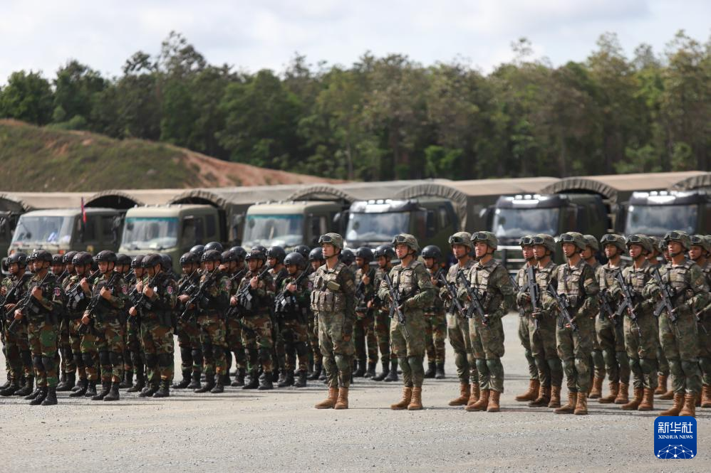 5月28日,柬埔寨磅清扬省王家军宪兵训练中心,中柬“金龙-2025”联合演习结束仪式现场。图源:新华社