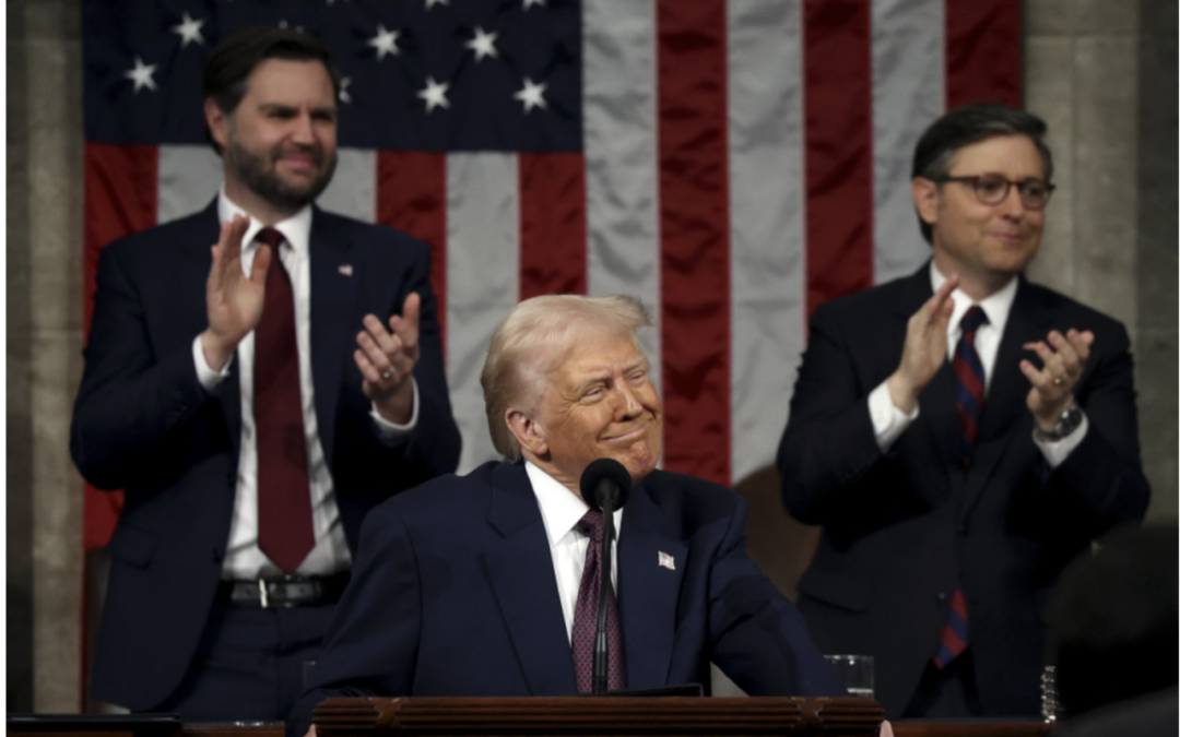 特朗普于2025 年3月4日在华盛顿国会大厦举行的国会联席会议上发表讲话。图源:AP