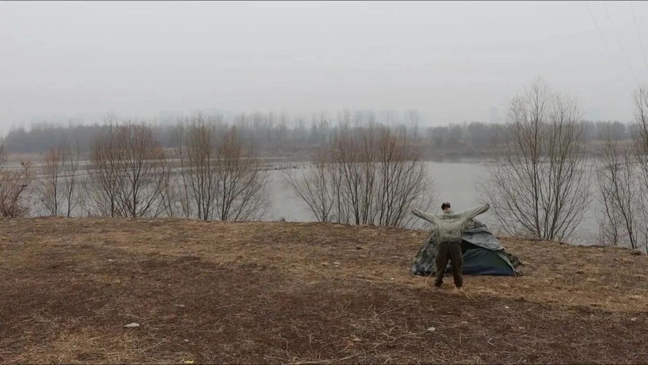 谷河響旅途中在渭河湿地公园露营后的早晨。