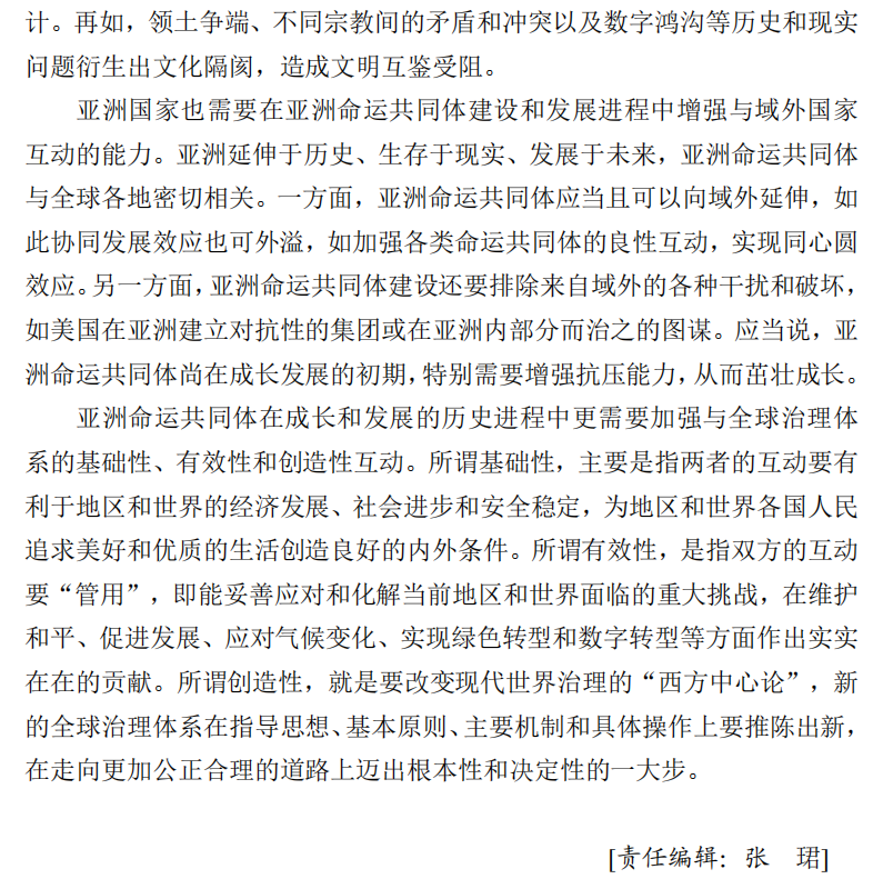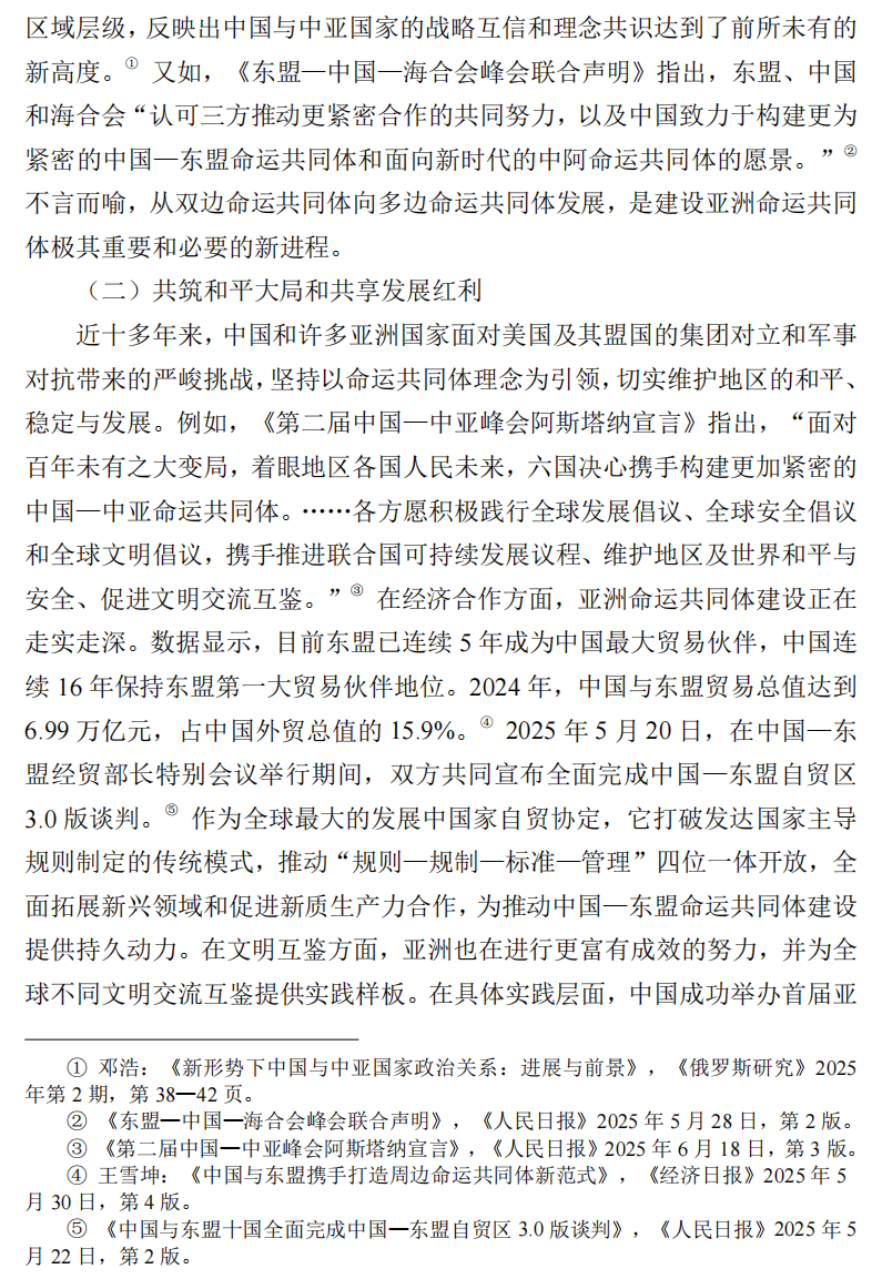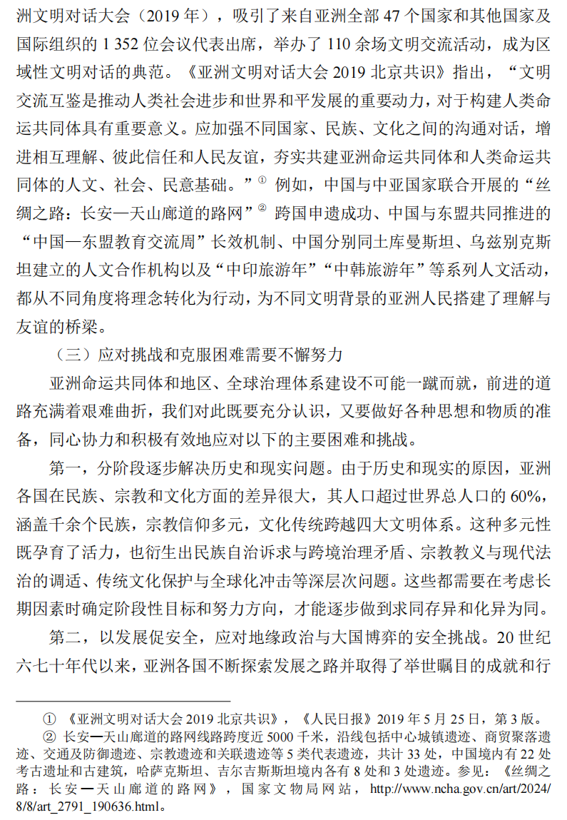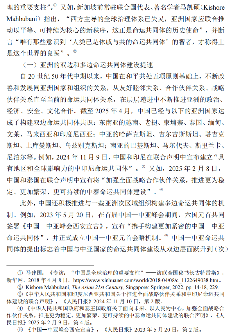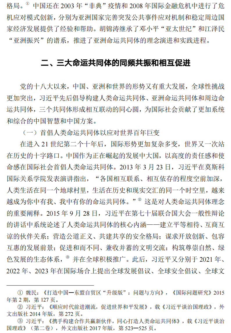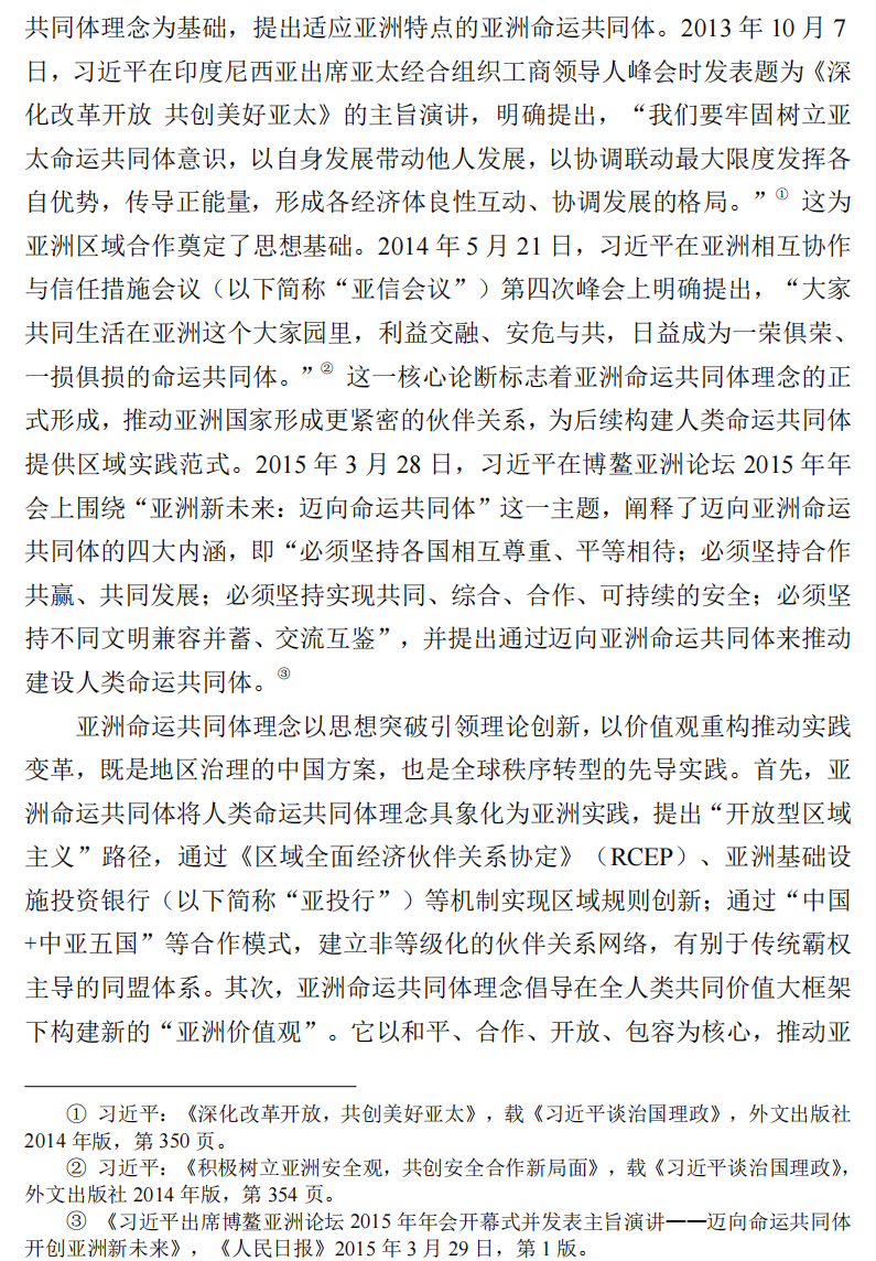 当前,百年变局加速演进,世界进入动荡变革期,亚洲在新时期负有重大的现实责任和历史使命。习近平主席站在时代的前沿,相继提出了人类命运共同体、亚洲命运共同体和周边命运共同体等系列理念。