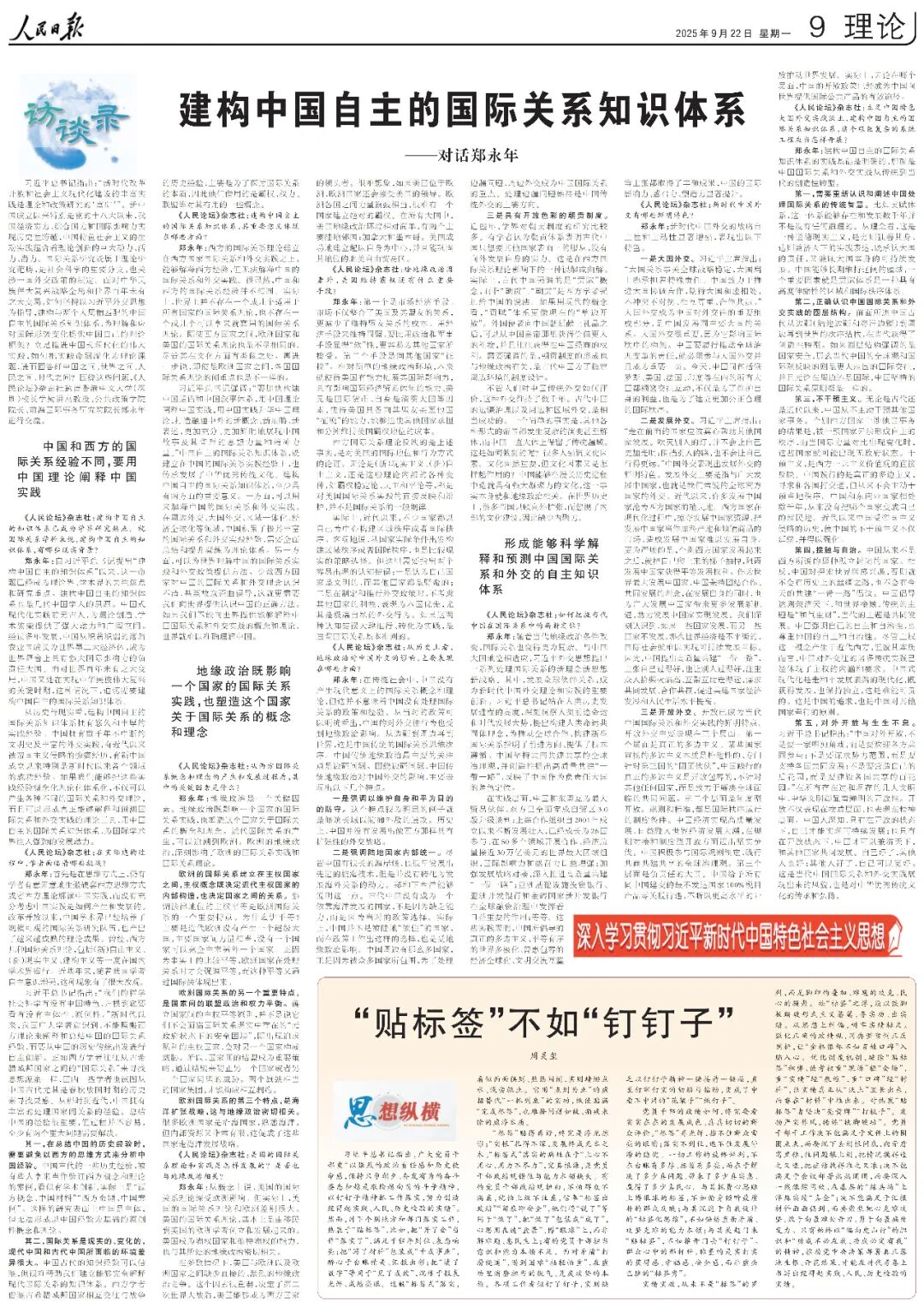 郑永年:自习近平总书记提出“建构中国自主的知识体系”以来,这一命题已经成为理论界、学术界的关注焦点和研究重点。建构中国自主的知识体系也是几代中国学人的夙愿。中国式现代化实践前无古人,为理论创造、学术繁荣提供了强大动力和广阔空间。经过多年发展,中国从积贫积弱的落后农业国成长为世界第二大经济体,成为世界舞台上具有强大国际影响力的负责任大国。面对世界百年未有之大变局,中国又处在实现中华民族伟大复兴的关键时期,这种情况下,迫切需要建构中国自主的国际关系知识体系。