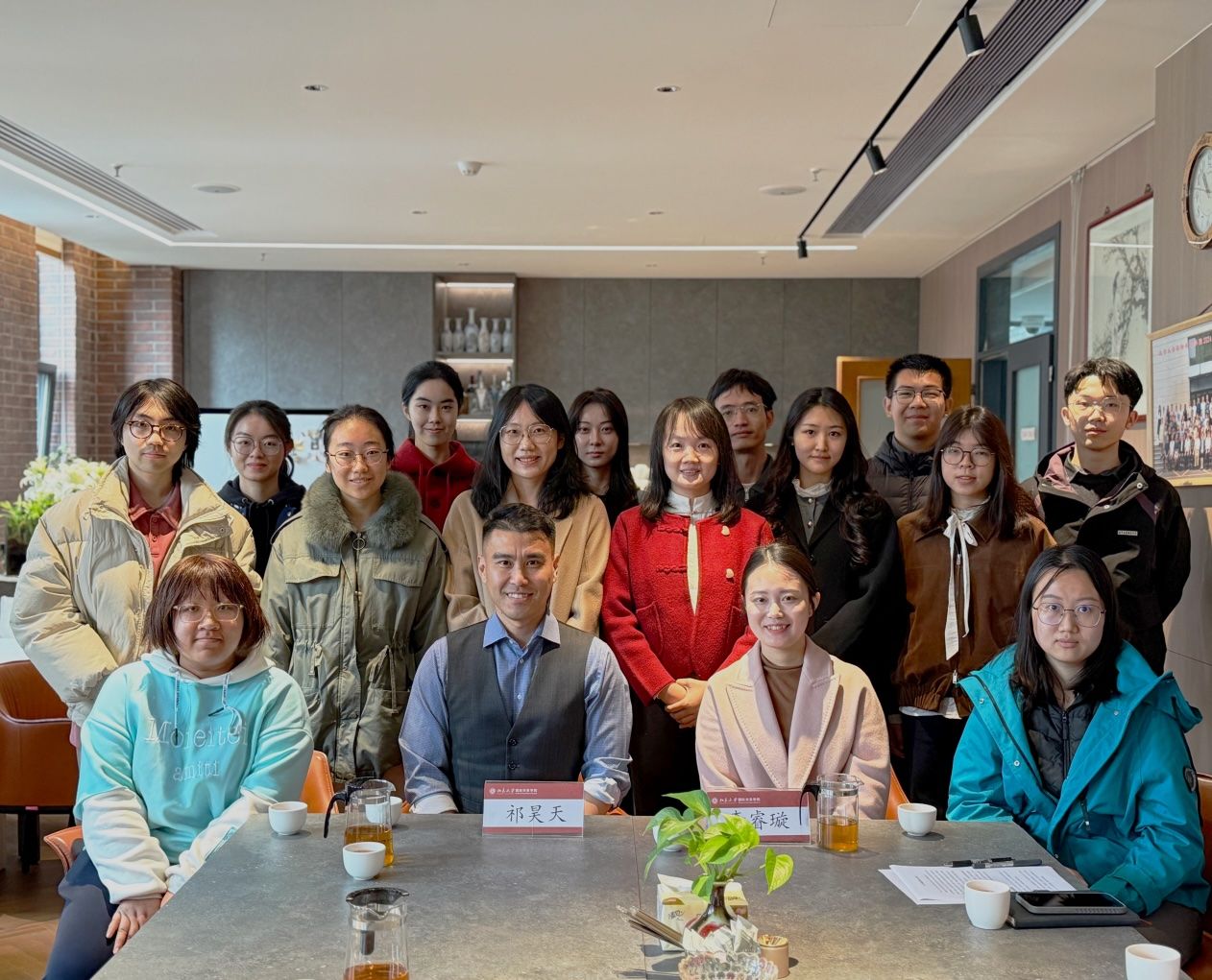最后,参加活动的老师和同学集体合影,第十期“博诚教授茶座”在融洽的氛围与思想的碰撞中落下帷幕。本次活动不仅让同学们深切领略到师长的人格魅力与学术卓见,更激发了大家对专业领域的细致洞察与深刻认知。“万里飞腾仍有路,莫愁四海正风尘”,愿每位同学都能通过此次活动汲取智慧与力量,勇敢地踏上未来的征途,绽放属于自己的光彩。