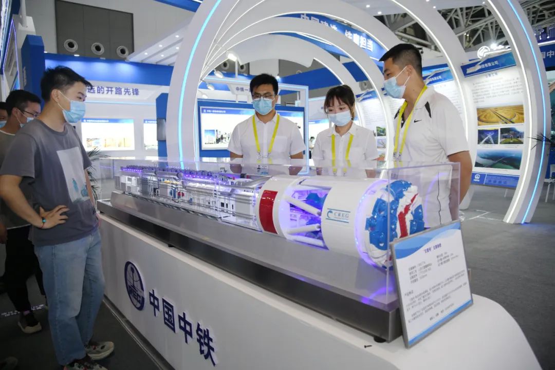 2022年8月16日,第六届丝绸之路国际博览会在西安开幕。图为承建“雅万高铁”的中国中铁集团展位展示的盾构机模型。