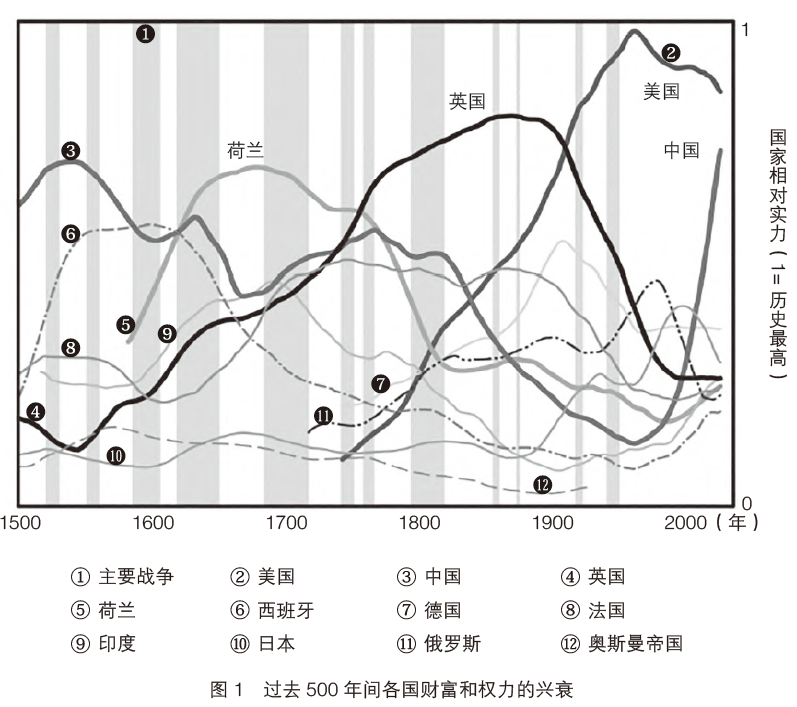 从这个意义来说,达利欧奉行朴实的现实主义国际关系理论信仰。在他看来,曾经一度国力强盛的国家有很多,然而每个时期的世界霸主却是唯一的。在当今一超多强的世界安全格局下,大国兴衰的“大周期模型”是否能准确地预测所有新兴崛起国家的发展轨迹,达利欧认为不同的国家有不同的时间,远不能一概而论。因此,《世界秩序》一书并没有把世界秩序变化的规律定调为“修昔底德陷阱”式的大国冲突和霸权兴衰交替。达利欧看到的是,周期也好、原则也好、规律也好,大国兴衰的变量依然复杂。这似乎又构成了达利欧在该书中思想矛盾的一面。他一方面相信他所解释的大国争斗兴衰的规律;另一方面,他仍然认为,决定大国争斗兴衰规律的变量体系仍然存在着开放性。这就是常理所说的,历史不会简单地重复。这一点也是达利欧思想的可贵之处。