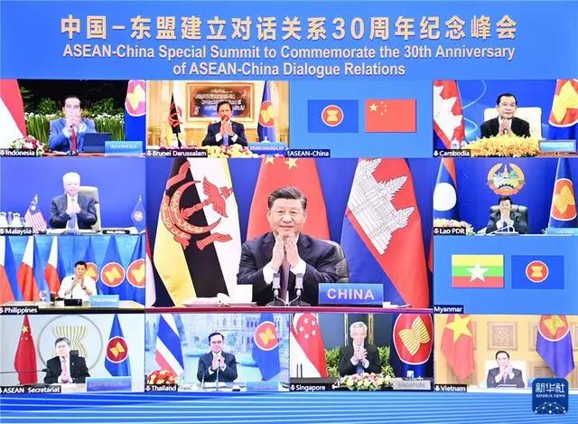 11月22日上午,国家主席习近平在北京以视频方式出席并主持中国-东盟建立对话关系30周年纪念峰会。