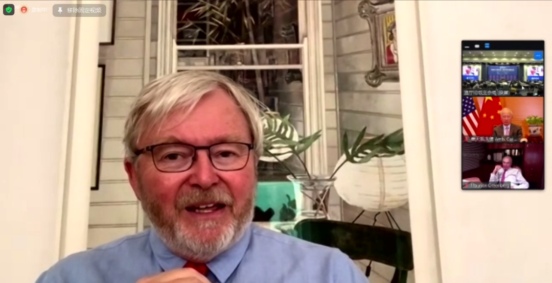 陆克文表示,未来十年,中美战略竞争应该不可避免。但是中美战争可以努力避免。中美竞争要有底线,要有规则。核心目标是:管控竞争,避免战争。