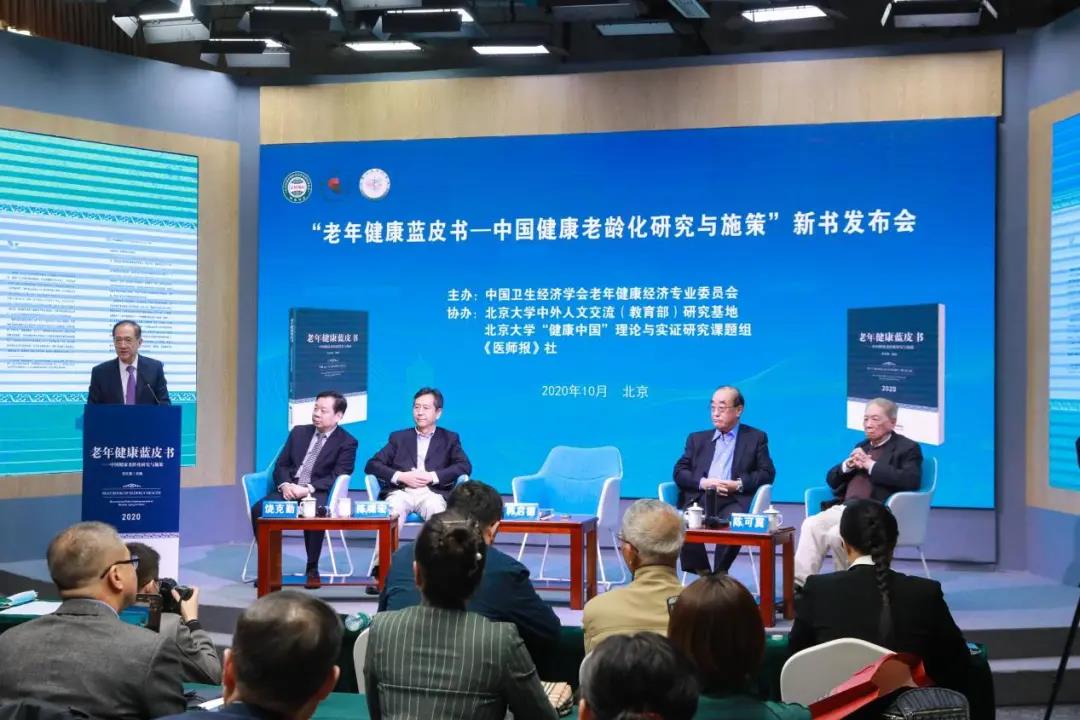 2020年10月18日,由中国卫生经济学会老年健康经济专业委员会(简称老年健康专委会)主办,北京大学中外人文交流(教育部)研究基地与北京大学“健康中国理论与实证研究课题组”协办的《老年健康蓝皮书-中国健康老龄化研究与施策(2020)》(以下简称《老年健康蓝皮书(2020)》)新书发布会在京圆满召开。