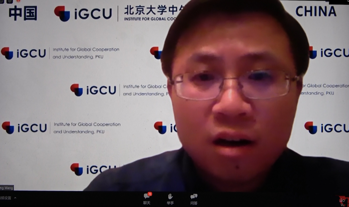 北京大学社会科学部副部长、国际关系学院教授、中外人文交流研究基地执行主任王栋在第二次全体线上会议发言