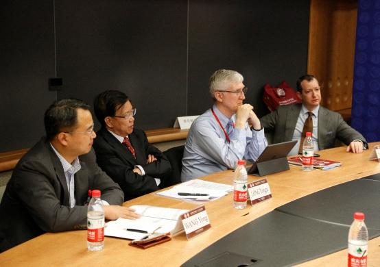 上午10:30,会议地点转至北京大学斯坦福中心,进行闭门的主题讨论。讨论由北京大学国际关系学院院长贾庆国、北京大学斯坦福中心主任戴慕珍主持,吴建民大使、内格罗蓬特大使就当今中美两国的热点问题,如南海问题、中美经济合作、美国大选等,进行了更为深入的探讨。