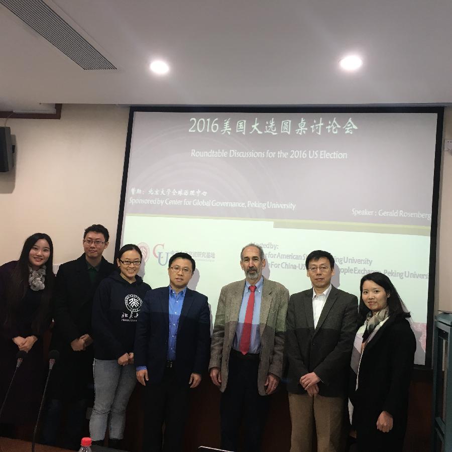 11月5日上午,在美国大选进入倒计时第四天之际,美国芝加哥大学法学院政治学系副教授Gerald N. Rosenberg在北京大学国际关系学院与部分师生举行2016年美国大选圆桌讨论会。本次活动由北京大学中外人文交流研究基地(原北京大学中美人文交流研究基地)和北京大学美国研究中心联合举办。