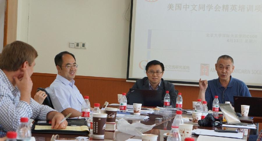 2015年6月13日上午,美国中文同学会领导精英培训项目成员访问北京大学中外人文交流研究基地(原北京大学中美人文交流研究基地)。包括美国中文同学会会长、马里兰大学中国事务部主任安耐德在内十一位美国政、商、学界青年精英参加了由基地组织的培训课程。