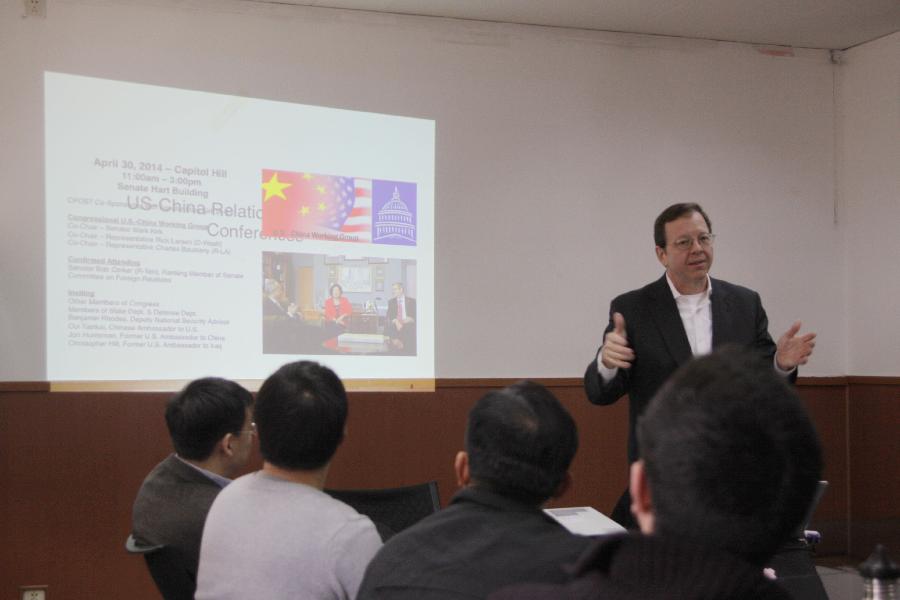 本次讲座由美国研究中心秘书长范士明主持。北大国关访问学者、二炮指挥学院姬宏斌教授,北大国关学院张植荣教授、节大磊博士、中外人文交流研究基地执行副主任王栋副教授以及来自国关各专业的近30位硕士、博士博研究生参加了此次讲座。讲座现场气氛活跃,在场师生向佩普教授提出了许多相关问题,佩普教授一一回答,双方进行了精彩而深入的讨论。