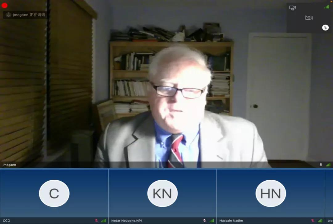 会议首先由美国宾夕法尼亚大学劳德研究院智库研究项目(TTCSP)创始人兼主任詹姆斯·麦甘博士(Dr. James G. McGann)致开幕辞。他指出,新冠病毒对全球人民的生产生活造成了前所未有的威胁,对于全球公共卫生和经济生产造成了毁灭性的打击。在此背景下,各国智库不断服务于决策层和公众抗击疫情之需,发挥建言献策作用。智库研究项目(TTCSP) 致力于调动全球智库社群积极行动,凝聚抗疫合力,组织了一系列研讨会,希望能够为智库商讨如何制定可行性高的抗疫措施提供平台。