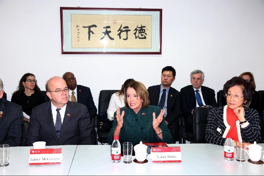 2015年11月13日,美国众议院少数党领袖佩洛西率民主党议员代表团访问北大,与北京大学师生代表围绕中美关系特别是气候变化主题进行座谈。全国人大副秘书长陈国民陪同参加座谈。座谈会由北京大学美国研究中心主任、中美人文交流研究基地执行委员会委员袁明教授主持,北京大学国际关系学院张海滨教授和来自北京大学法学院、燕京学堂、及国际关系学院的学生代表参加了座谈会。