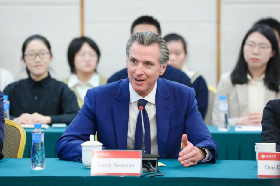 纽森指出美中关系非常重要,并鼓励学生要相信可以通过个人努力发挥领导和影响作用。纽森表示,中国的发展成就特别是在新能源领域的发展成就令人赞叹。他希望通过此次访华,推动加州与中国在低碳发展、气候变化等诸多领域开展合作,携手应对全球性挑战。