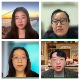 在汇报环节,四位获奖同学分别就各自的研究兴趣、研究计划等进行了介绍,并分享了一些个人经历与体会。陈涵同学主要关注领域为“美国新左翼(The American New Left Wing)”,从派系政治的角度探讨60年代新左翼的形成、演变以及对美国身份政治的影响。原瑞辰同学的研究兴趣侧重在全球范围内中美经济的传播及其驱动因素。依多同学的研究主要探讨英语公共媒体如何描绘“狼战外交”。徐高同学的研究课题聚焦美国对华门户开放政策如何从美国国内的外交政策转变为由主要大国签署的国际条约。