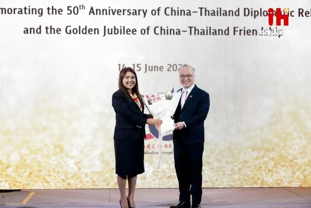 6月14日,为隆重庆祝泰中建交50周年,由中华人民共和国驻泰王国大使馆、朱拉隆功大学亚洲研究所中国研究中心、泰国法政大学比里·帕侬荣国际学院联合主办的国际学术会议“纪念中泰建交50周年暨中泰友谊金色50年”,在泰国曼谷朱拉隆功大学维席·帕朱莫大楼一楼CU社会创新中心盛大开幕。泰中两国政界、学界代表及青年学子齐聚一堂,回顾半世纪友好历程,共商未来发展大计。