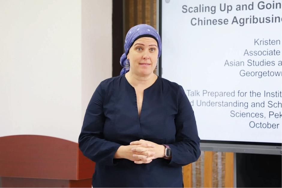 10月15日下午,由北京大学中国农业政策研究中心与北京大学中外人文交流研究基地联合主办的CCAP成立30周年系列活动、第162期农经前沿讲座暨北京大学国际关系学院“金九论坛”系列讲座在北京大学王克桢楼508会议室举行。美国乔治敦大学副教授卢可欣(Kristen Looney)作主题为“规模化发展与走出去:中国农业企业发展的政治经济学分析”的学术报告。本次活动由北京大学现代农学院博雅特聘教授、中国农业政策研究中心副主任刘承芳教授主持。十余名来自北京大学的本科生、硕士研究生、博士研究生参加了此次活动。